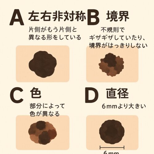 皮膚癌の中でも特に悪性黒色腫の早期発見には、ABCDアプローチが有効です。